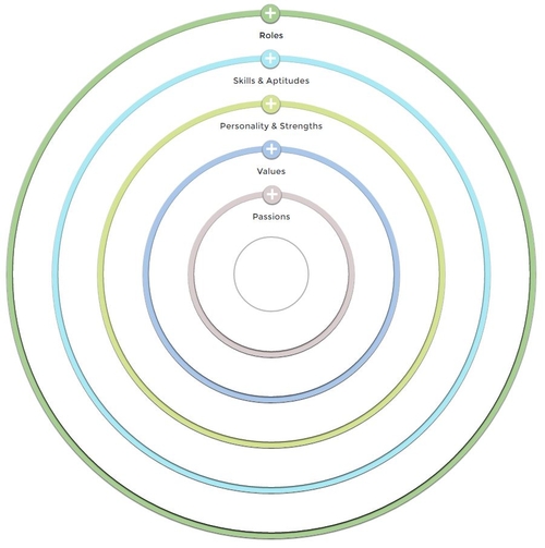 Getting what you want starts with knowing who you are. This principle of self-discovery is addressed through the Personal Profile activities where students enumerate what makes them unique: their passions, values, strengths, skills, and aptitudes. My10yearPlan.com® then creates a digital bullseye chart.